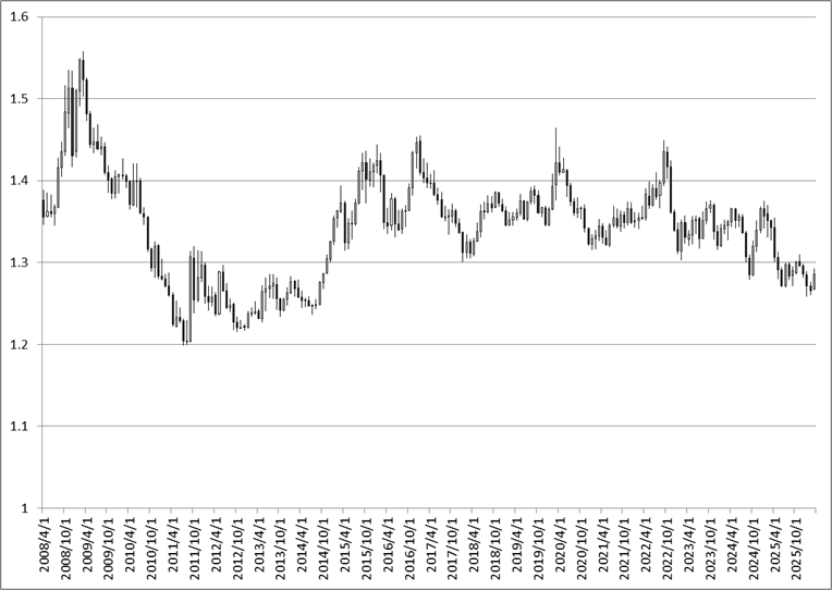 過去のチャート的には1.3000~1.4000のレンジで推移していることが多いので、ある程度はレンジ内に相場が戻ってくることを期待できそうです。
